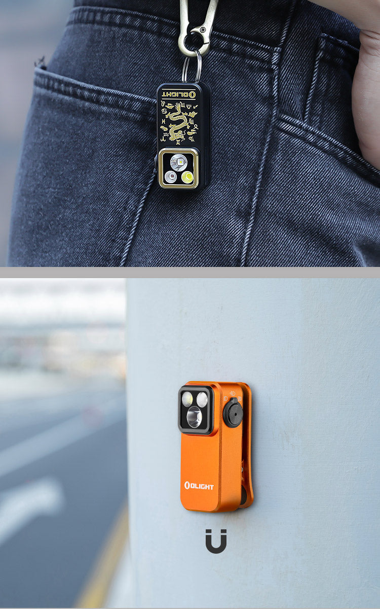 - Olight's First Clip Light with 3 Lighting Solutions: Oclip Pro comes with 500lm white flood, 120-meter range spot, and 40/4lm red light, switching by rotating the side selector.