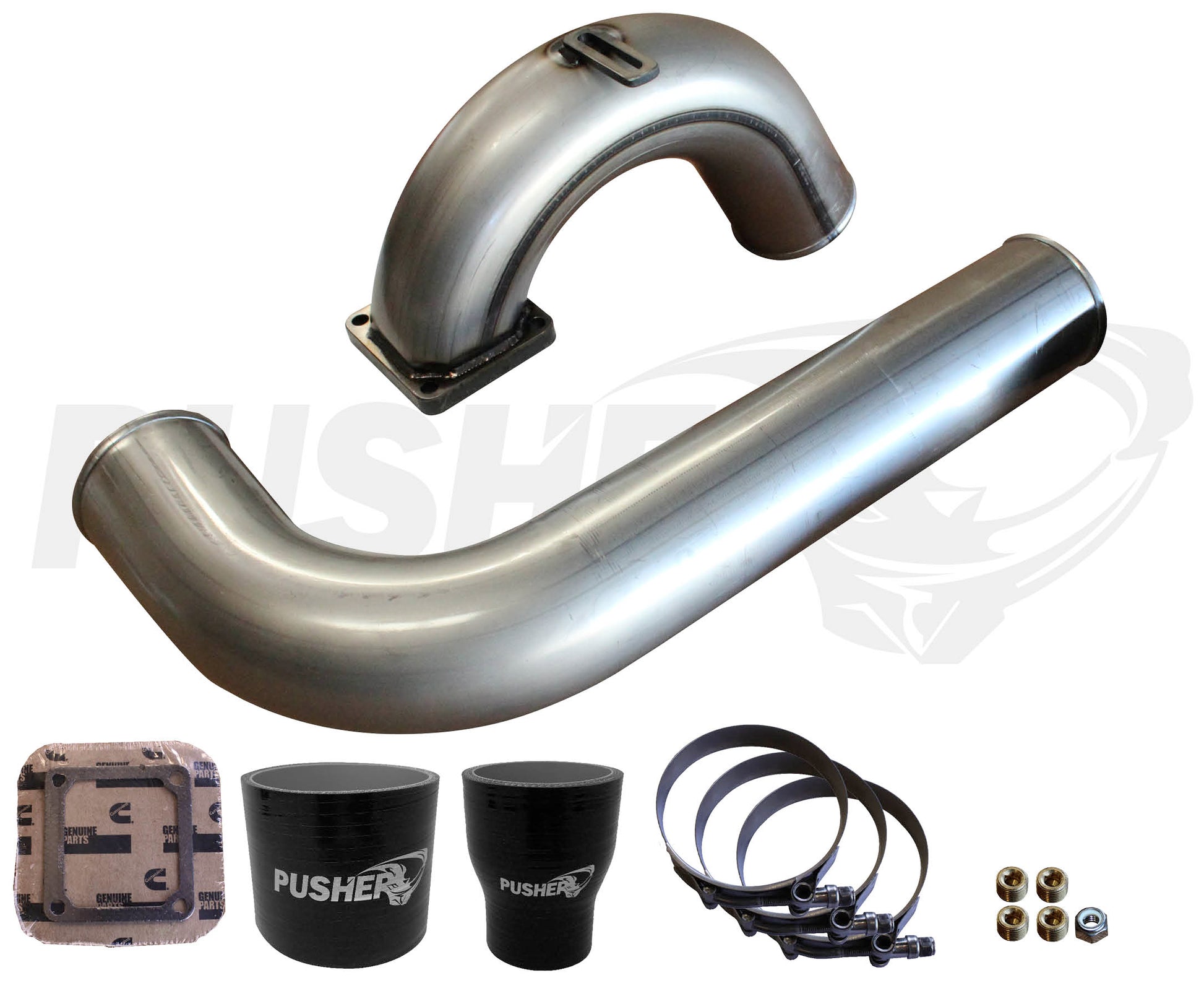 The Pusher 3.5" MEGA Intake System with replaces your stock post-intercooler piping and intake manifold with 3.5" mandrel bent tubing, increasing the flow efficiency of your charge system by 55%.