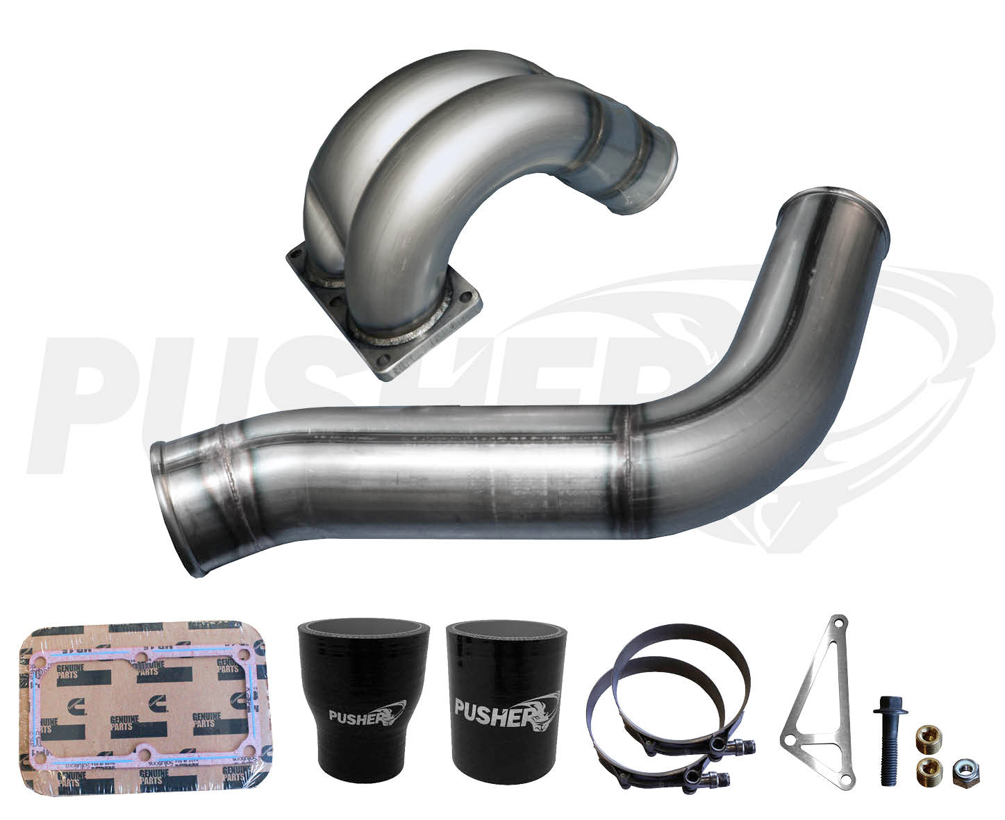 In addition to the intake manifold and intercooler tube, our system includes factory Cummins gaskets and hardware, heavy-duty 5-ply silicone couplers, stainless T-bolt clamps, port plugs, a stainless dipstick mount, and detailed, full-color instructions with photos—everything needed for a smooth and seamless installation.
