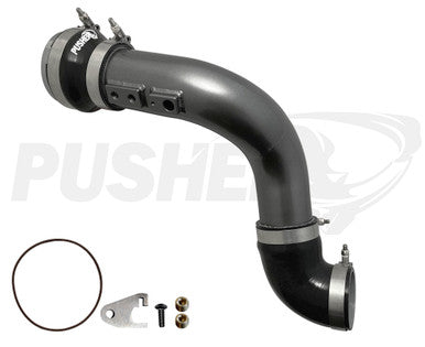 The Pusher HD 3" Cold Side Charge Tube with Throttle Valve Adapter replaces the unreliable OEM plastic charge tube with a precision-engineered, mandrel-bent, fully machined, and TIG-welded assembly, providing a permanent and dependable solution. This setup is the top choice for shops and truck owners seeking the highest-quality upgrade for OEM-tuned trucks.